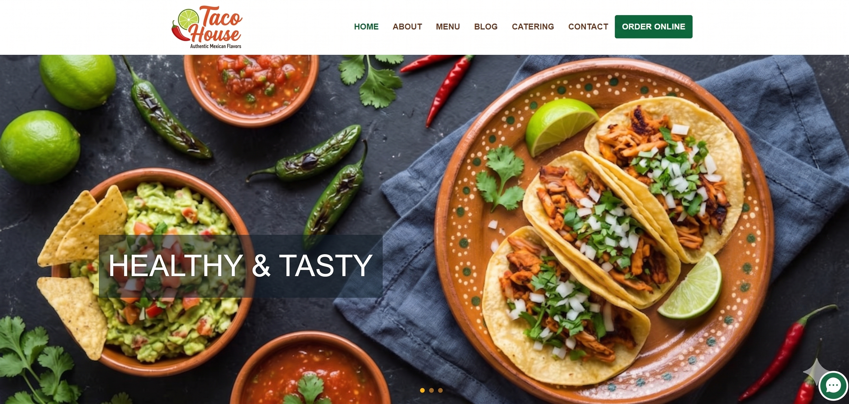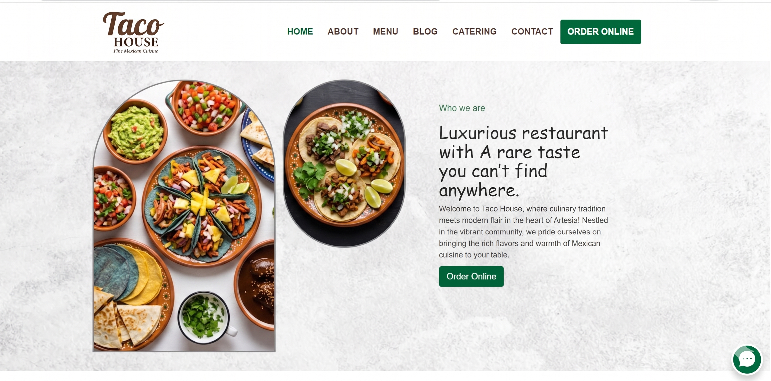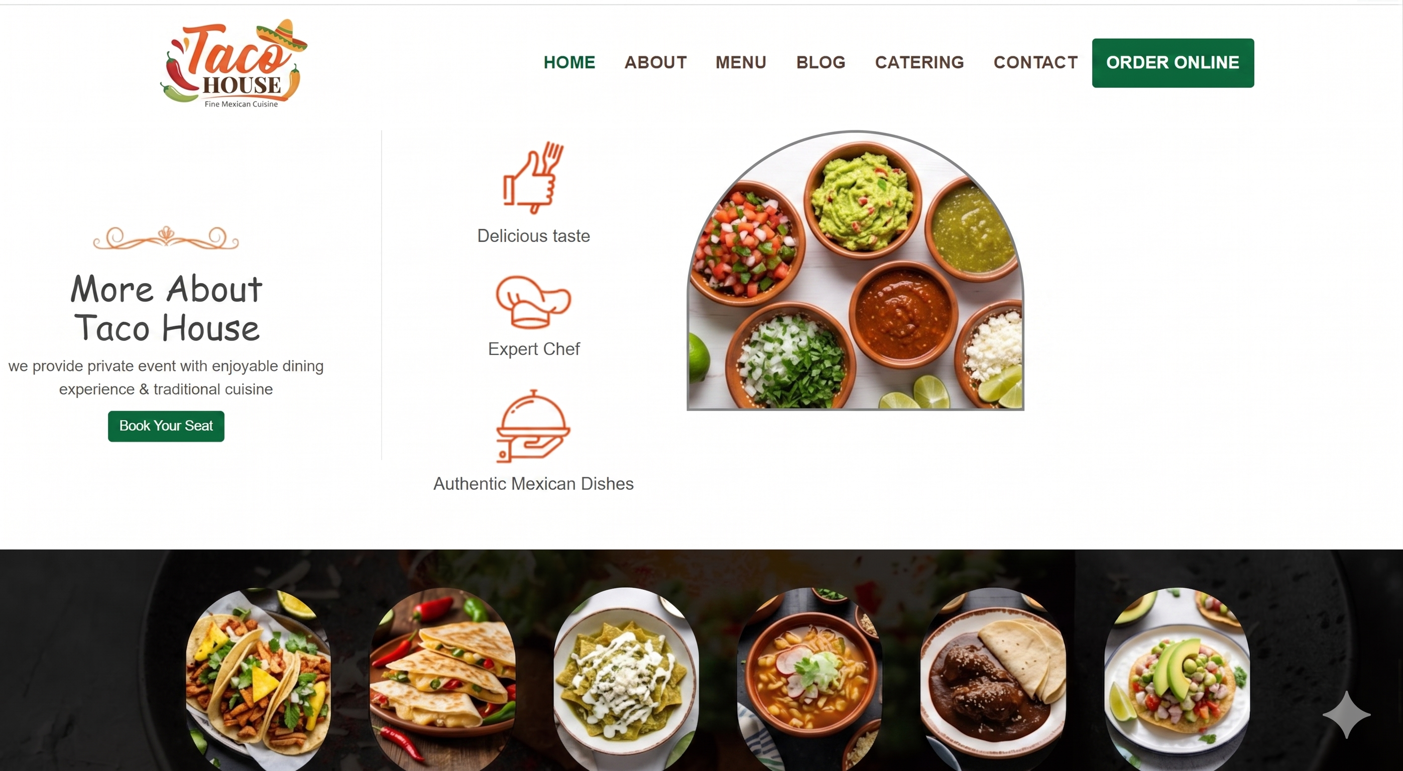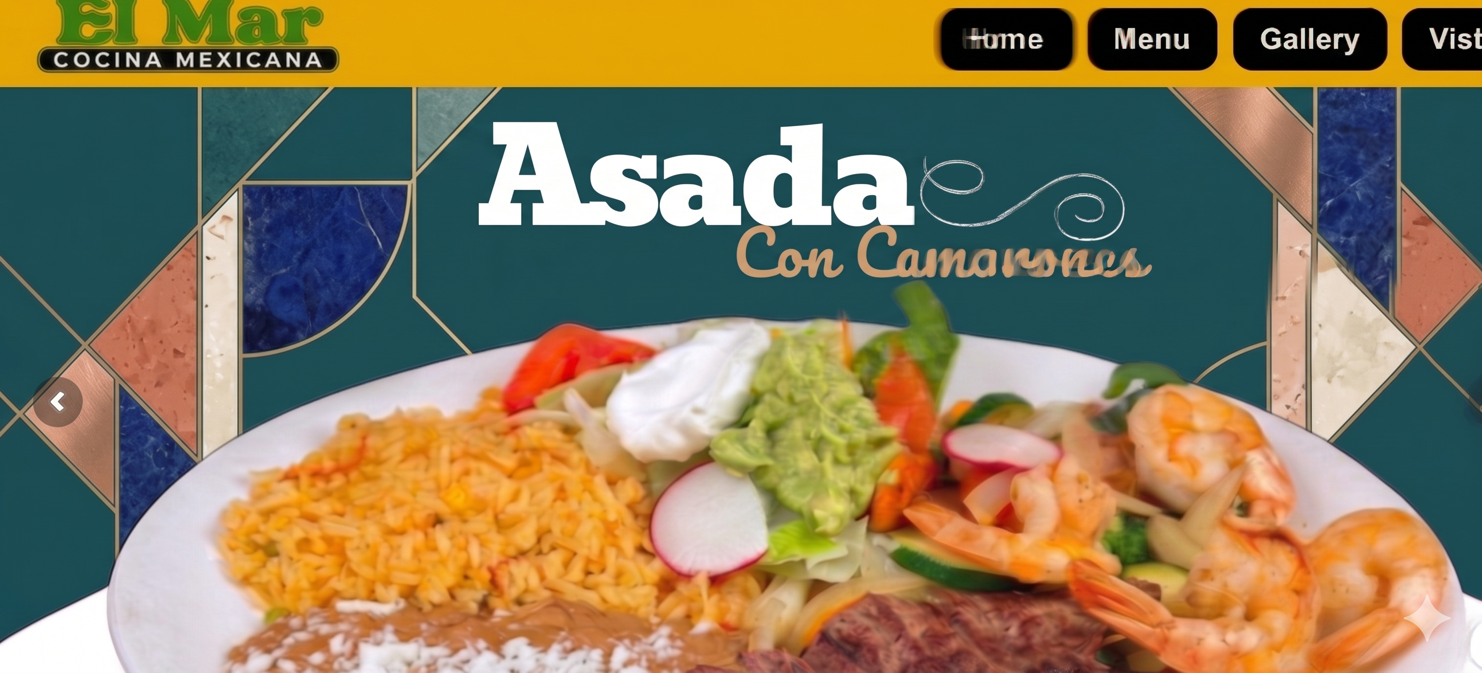 Beautiful homepage, menu section, location, contact options, and restaurant-focused layout.